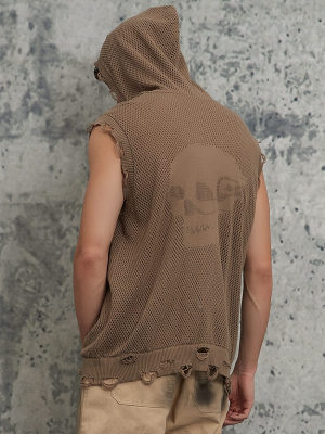 Chaleco con capucha de lana con diseño de red de pesca | Estilo urbano oscuro | Fabricante de suéteres de ropa urbana