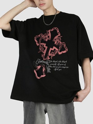 Fabricación de camisetas personalizadas con inyección directa de tinta blanca, algodón lavado, camisetas con estampado de cruz oscura