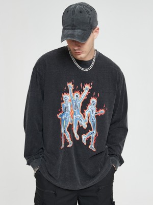 Fabricación de camisetas personalizadas con efecto lavado ácido, impresión por transferencia térmica en tonos oscuros, camisetas oversize para hombre