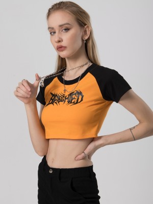 Camiseta corta de mujer con estampado personalizado de texto gótico | 180 g/m², 35 % algodón, 65 % poliéster, corte ajustado, estilo urbano oscuro