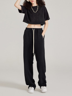 Camisetas cortas personalizadas de lavado oscuro | Camisetas cortas de cuello redondo para mujer de 230 g/m²